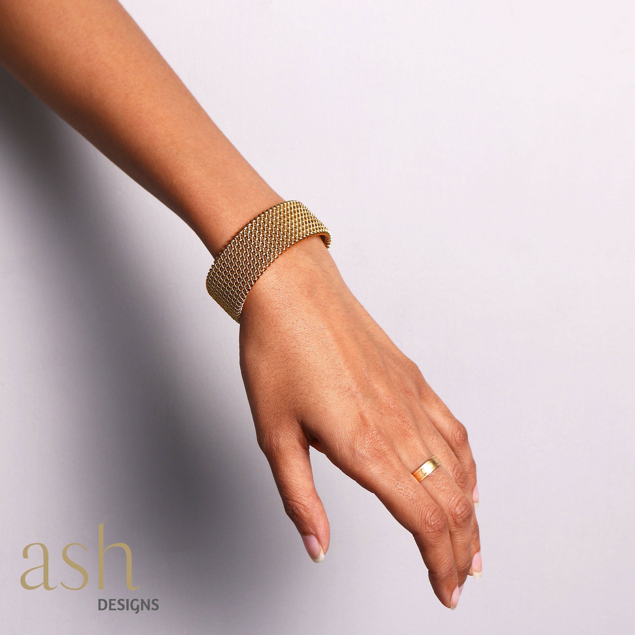 Make a bold impression with the Mesh Luxe gold-plated cuff. With its woven texture and sleek open design, this piece blends strength and sophistication effortlessly. Lightweight yet statement-worthy, it’s perfect for everyday power dressing.